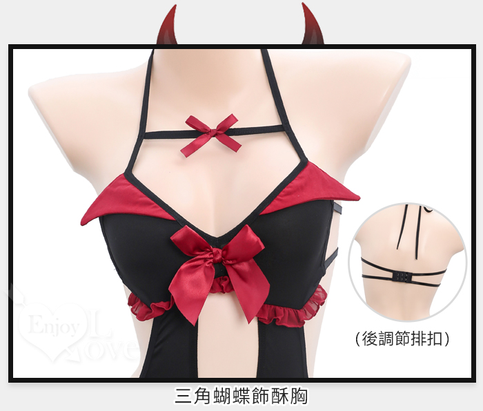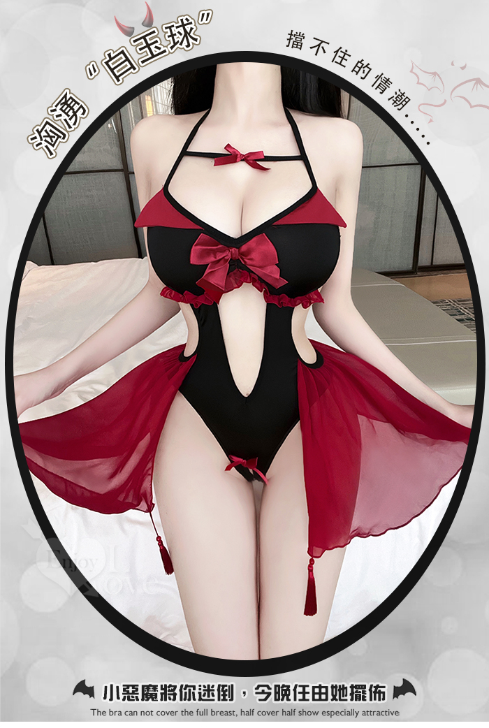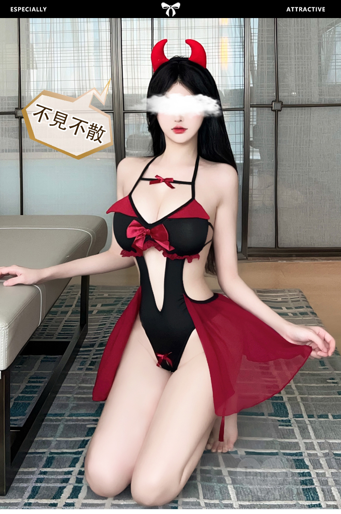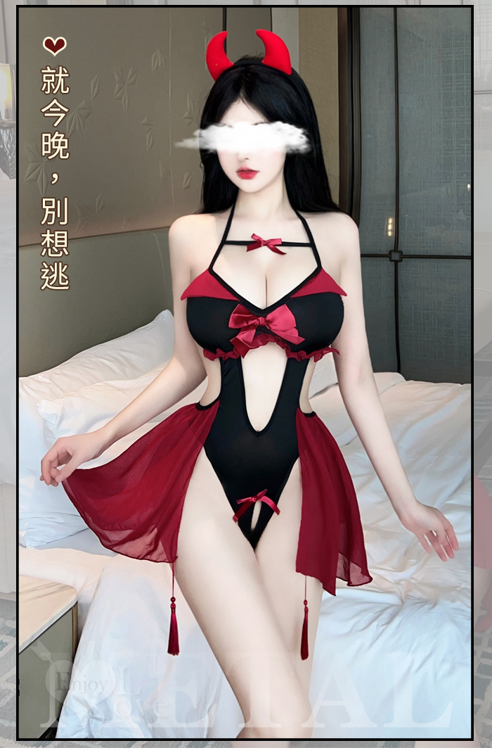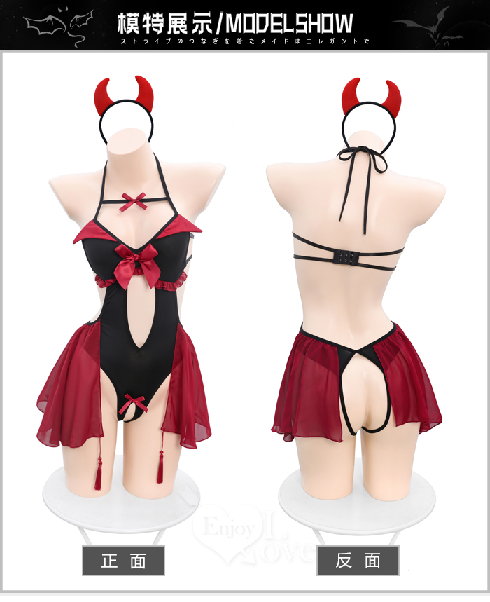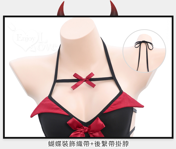 ►您現在的位置:首頁>小惡魔角色扮演服!細帶掛脖後裸背腹部挖空開襠連身裝兩件組