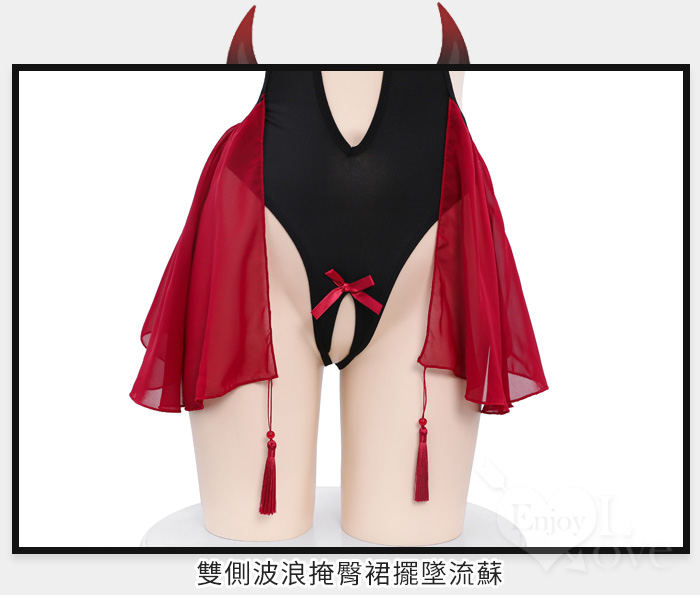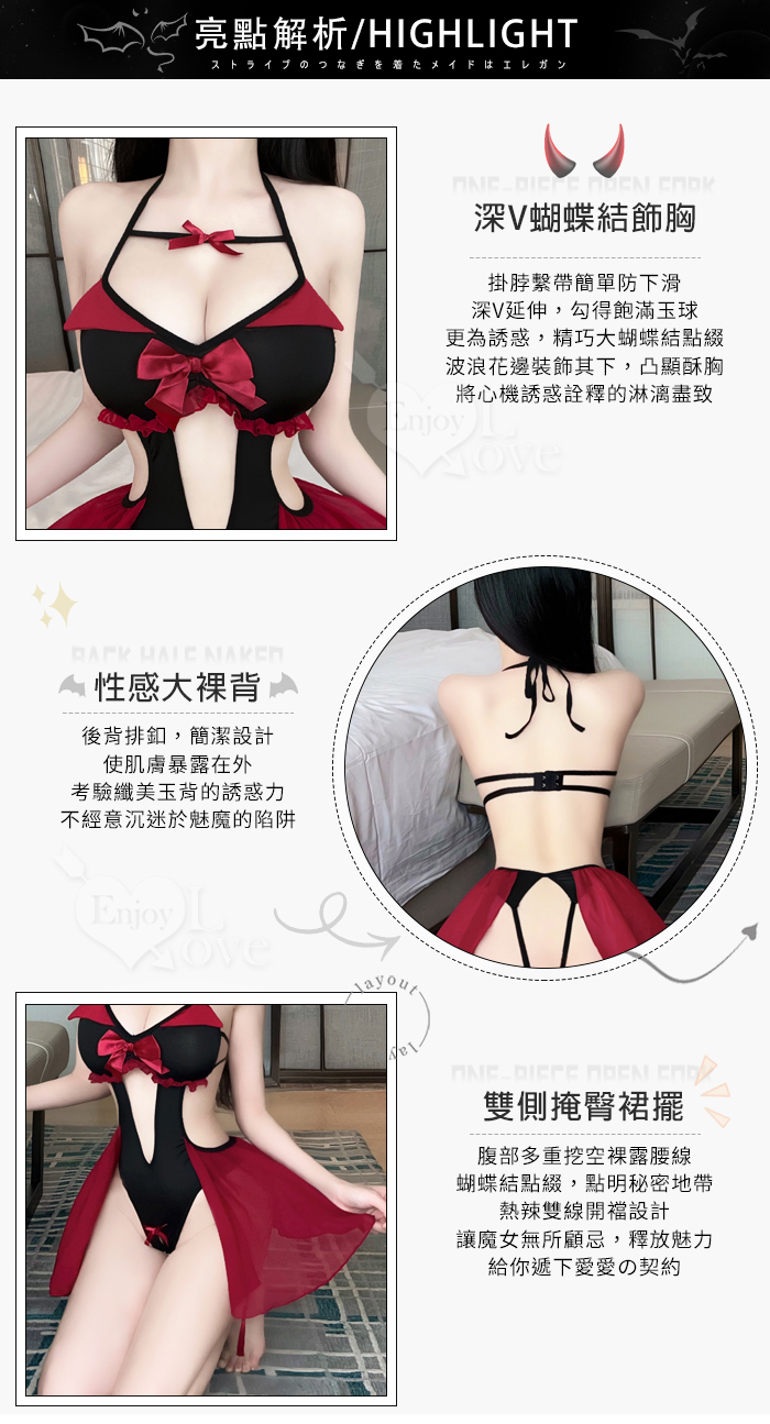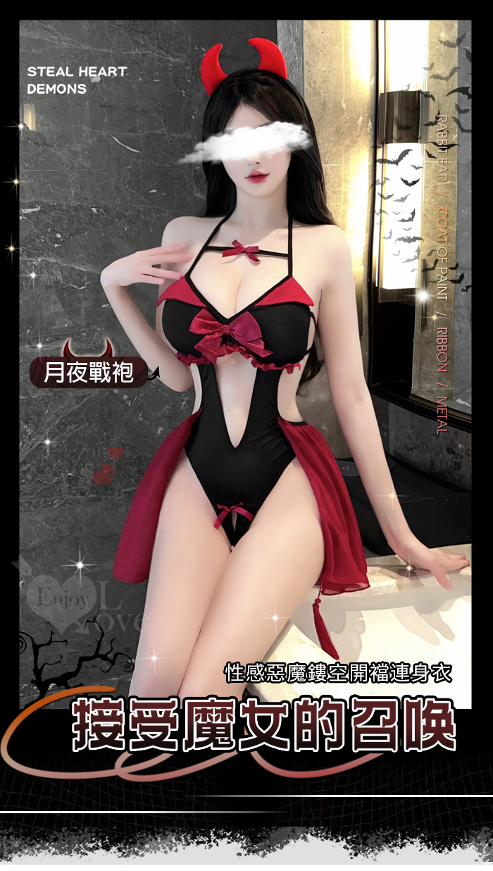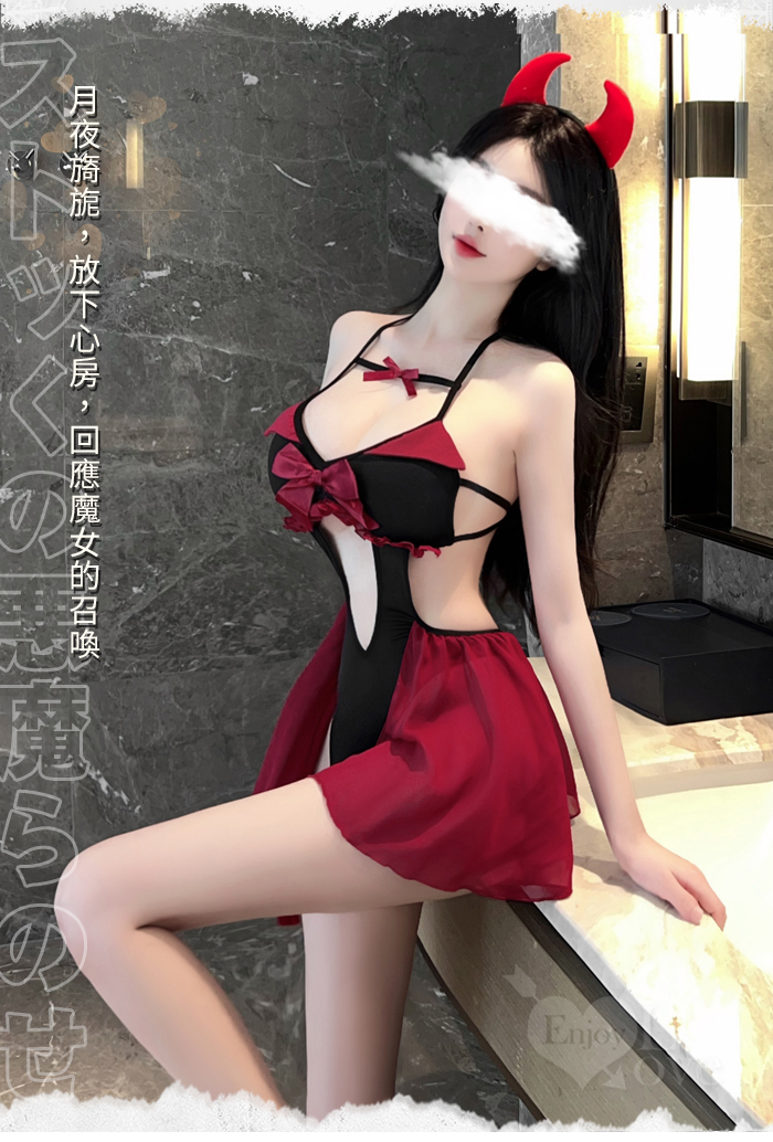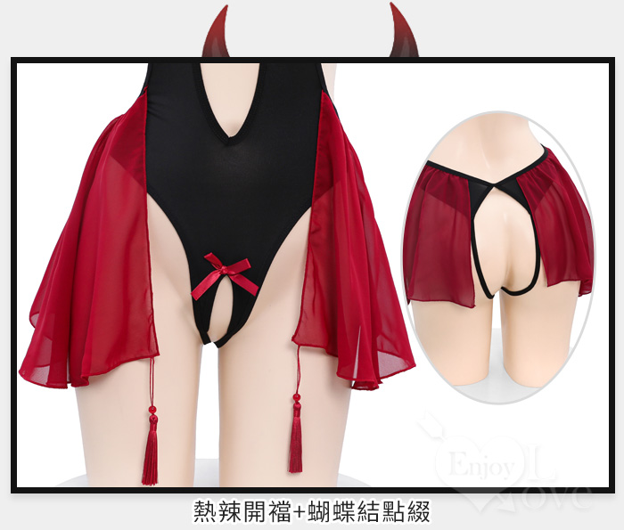 ►您現在的位置:首頁>小惡魔角色扮演服!細帶掛脖後裸背腹部挖空開襠連身裝兩件組