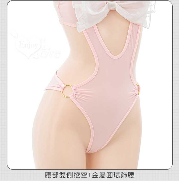 兔女郎角色扮演服!萌寵甜粉雪白酥胸圓環雙側露腰連身衣兩件組