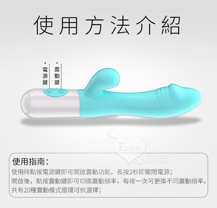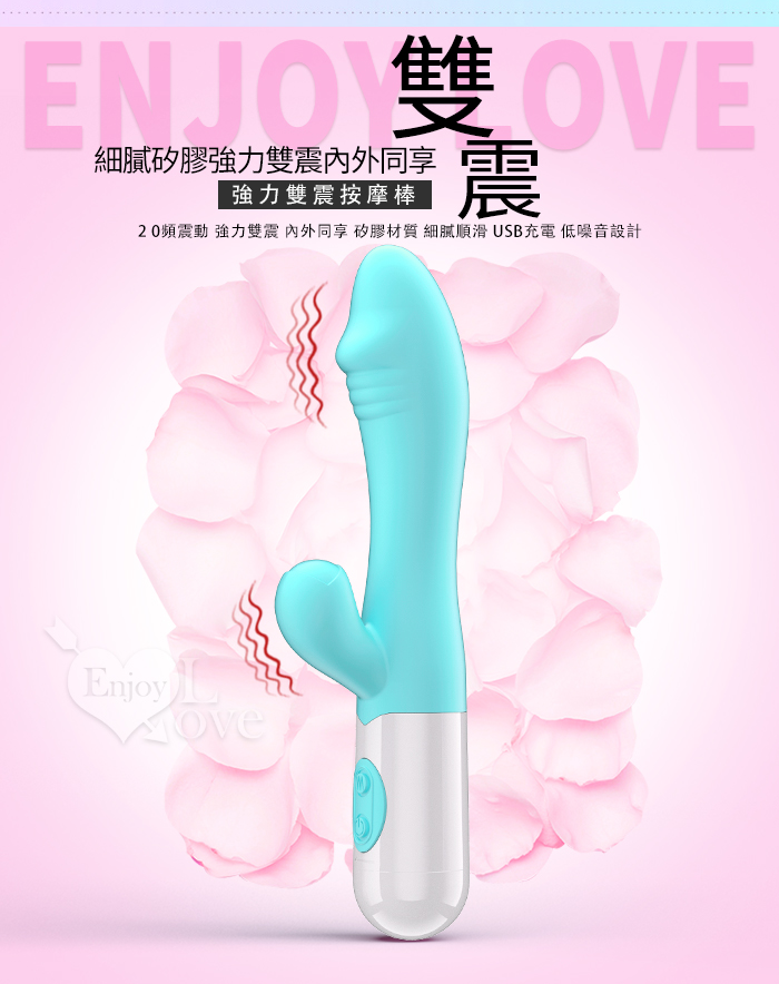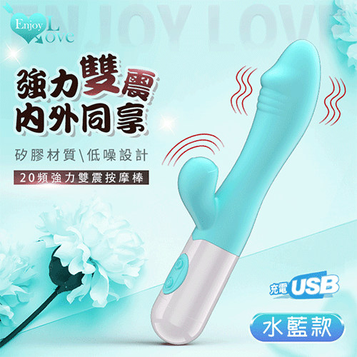 Enjoy Love ‧ 強力雙震 內外同享 20頻電動按摩棒~充電款 - 水藍