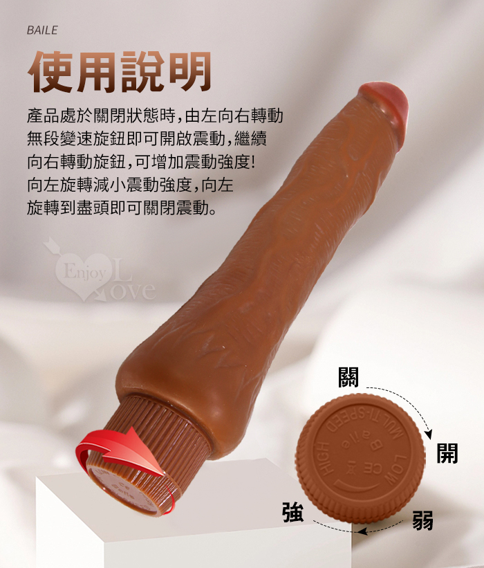 | 【BAILE】Fryad 弗里亞德 9.8英吋無極微調震動 褐色肌仿真老二按摩棒