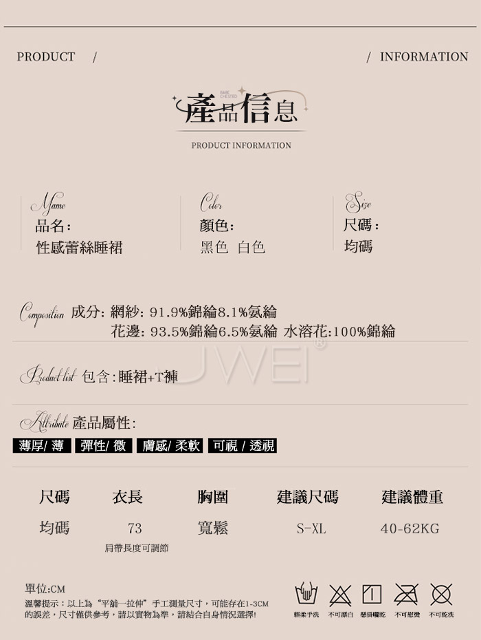 ■內容物:情趣睡衣x1、內褲x1 ■適穿尺寸:FREESIZE ■彈性:些許 ■未撐開平量尺寸正負誤差1~2cm,1吋=2.54cm ■注意事項:基於保障消費者個人衛生,此貼身衣物恕不接受退換貨。 (如為商品本身暇疵,接受七日內換貨,請勿試穿,謝謝您)