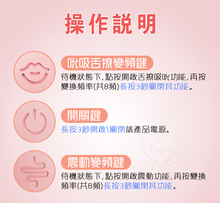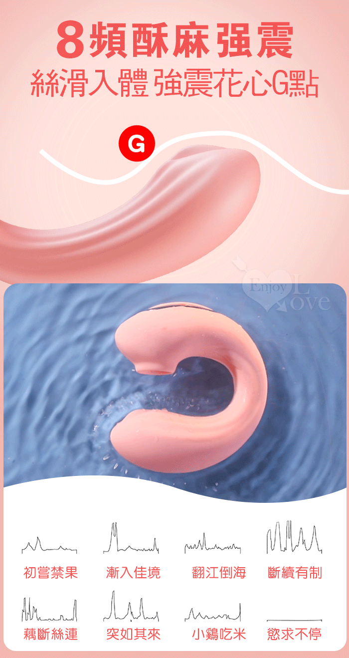 ►您現在的位置:首頁>JIUAI 失控G點棒 強震款 ‧ 8X8 強震+吸吮舌撩 雙重體驗穿戴G點按摩器 - 氣氛燈磁吸充電魔盒﹝櫻花粉﹞