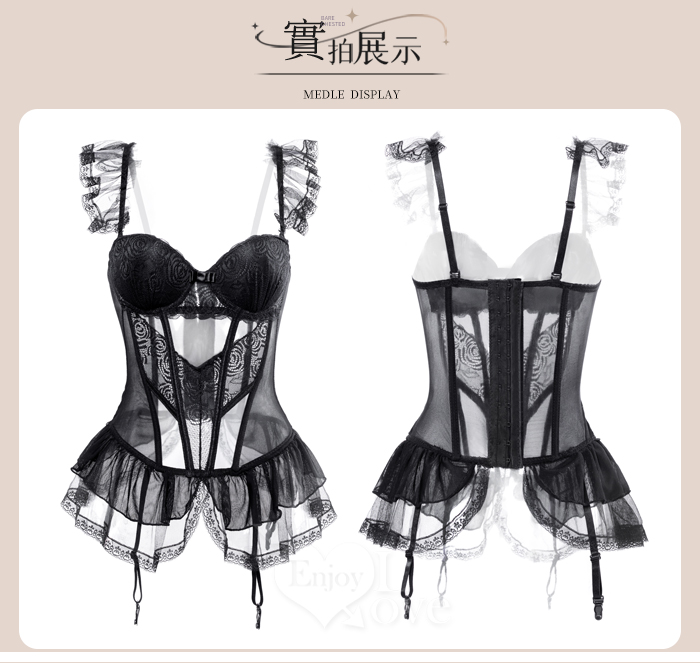 ►您現在的位置:首頁>情趣睡衣!法式輕奢鋼圈聚胸束身馬甲睡裙四件式套裝﹝黑﹞