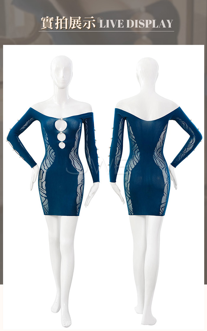 ►您現在的位置:首頁>水月明珠.火辣爆乳鏤空珍珠點綴側邊提花包臀網衣裙
