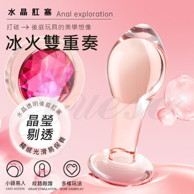 | 謎姬 MizzZee.水晶鑽石 圓潤尖頭冰晶玻璃肛塞-中號