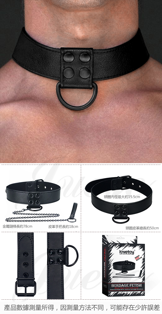 BONDAGE FETISH SM虐戀皮革鐵鍊頸環-黑