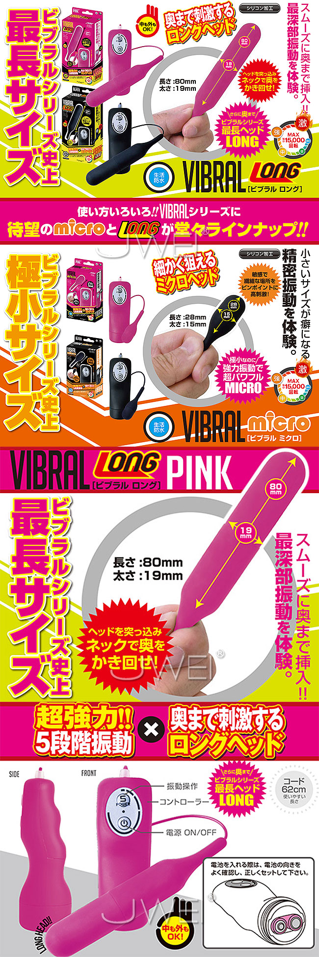 日本原裝進口A-ONE.VIBRAL系列 5段變頻強力跳蛋-LONG(黑)