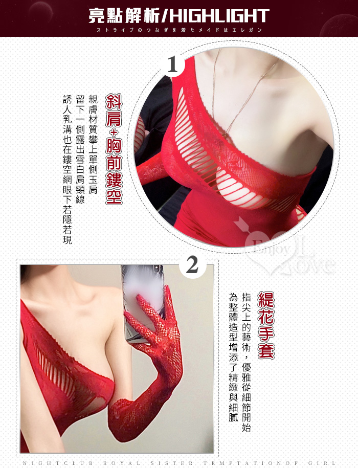 ►您現在的位置:首頁>極性貓裝!摩登單斜肩鏤空透視誘惑網衣連身裙兩件組