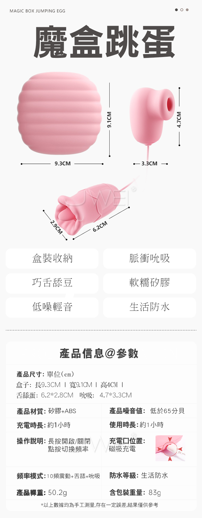 | 謎姬 MizzZee.魔盒.10頻挑逗吮吸舌舔爆震變頻跳蛋-盒裝收納+磁吸充電 (吮吸舌舔款-粉色)