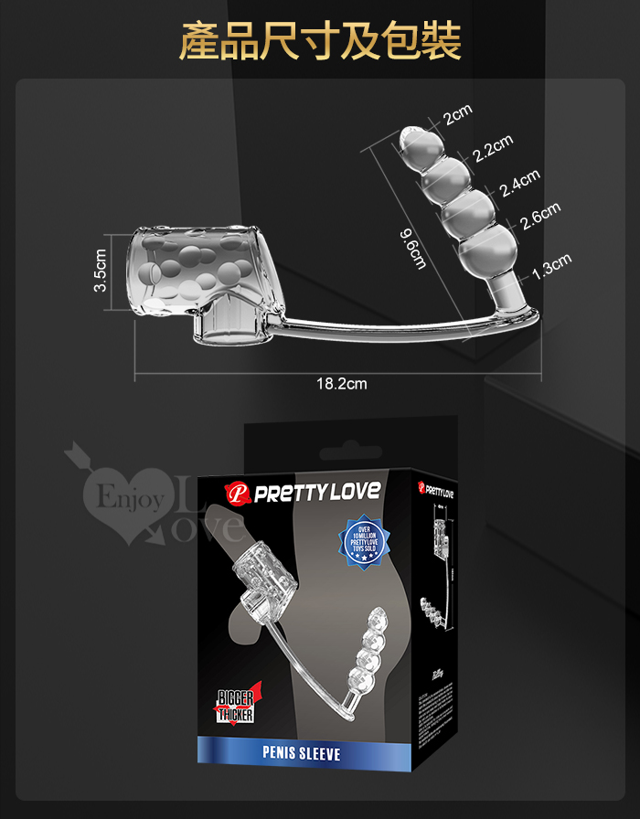 | PRETTY LOVE 派蒂菈 ‧ 瑞利 男士專用後庭刺激束精加強套﹝雙重緊固+拉珠按摩+凸起顆粒﹞透明色