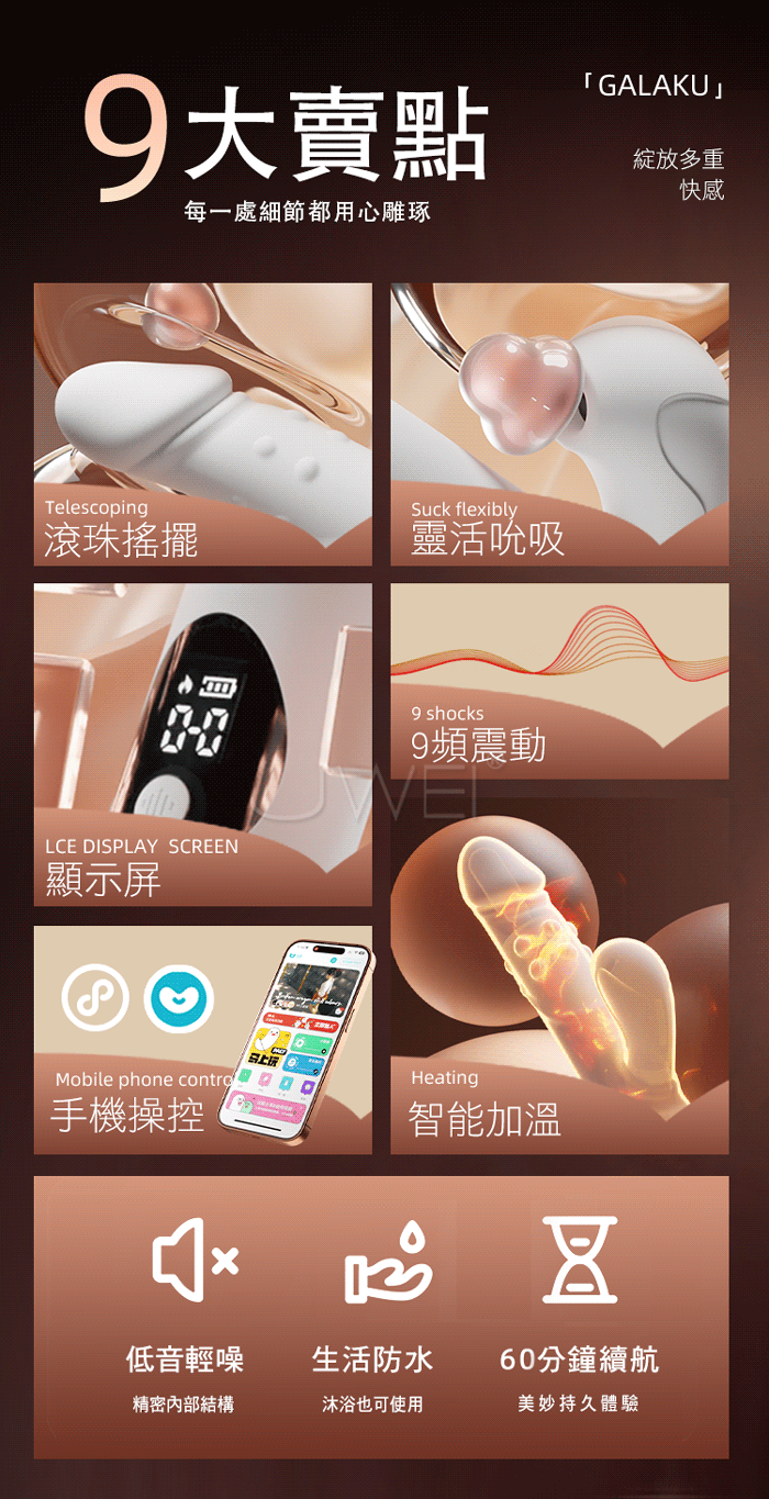 ■功能:9頻轉珠伸縮+震動+吮吸、加溫、APP操控
