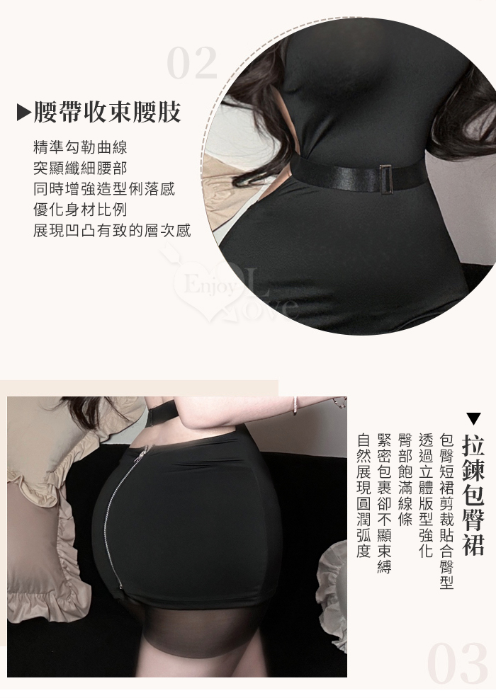 情趣睡衣!高領挖空裸背拉鍊包臀連身裙含開襠絲襪四件式套裝