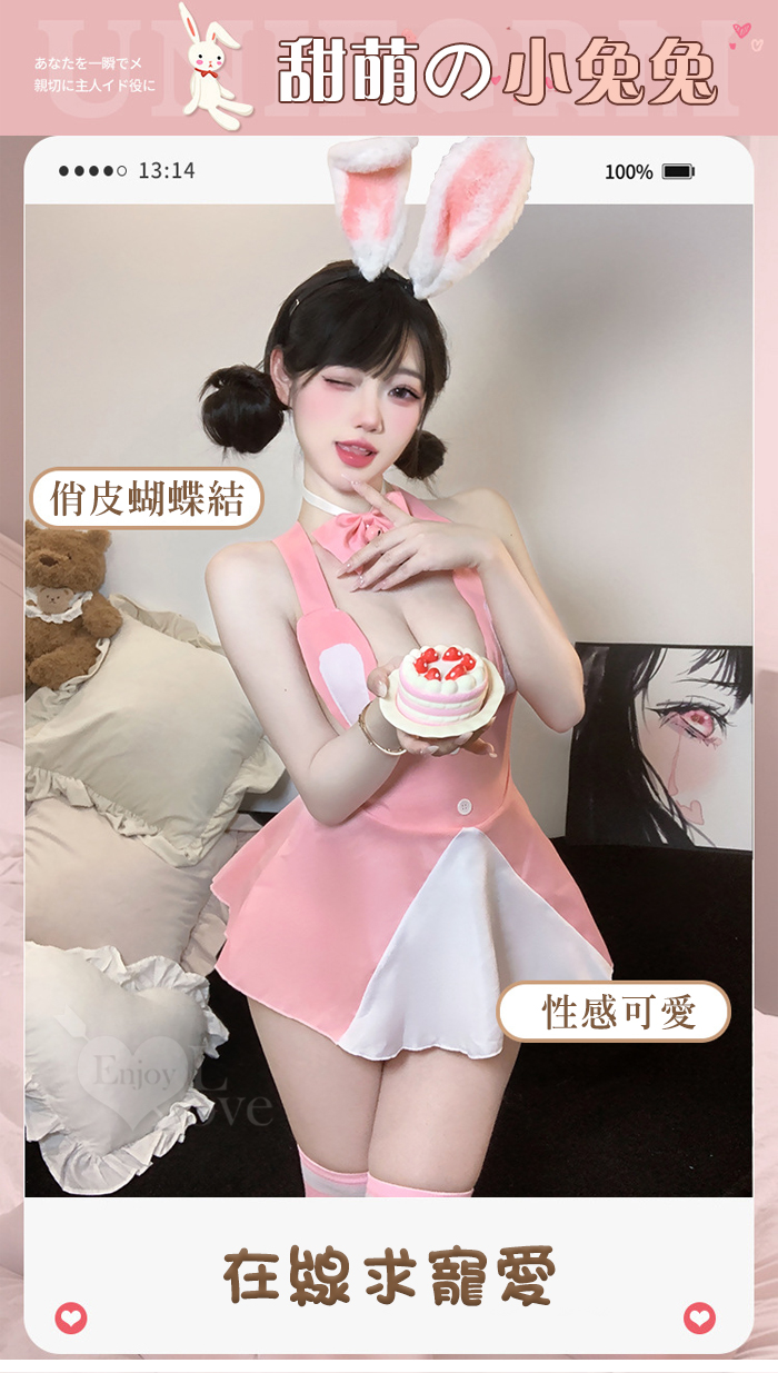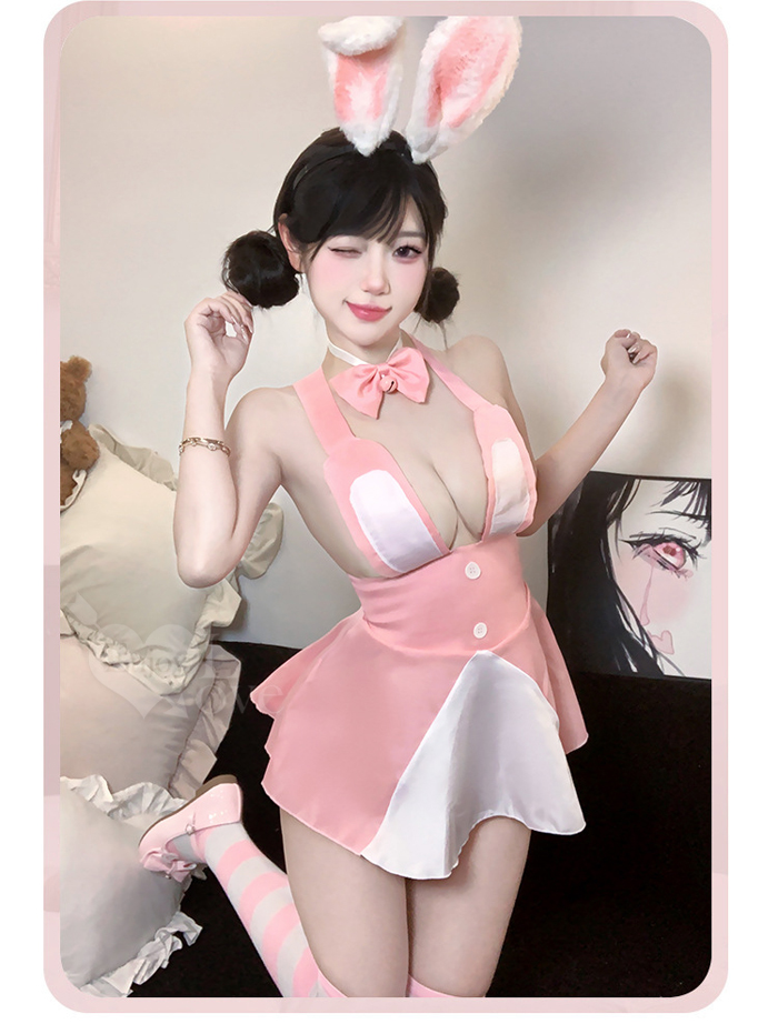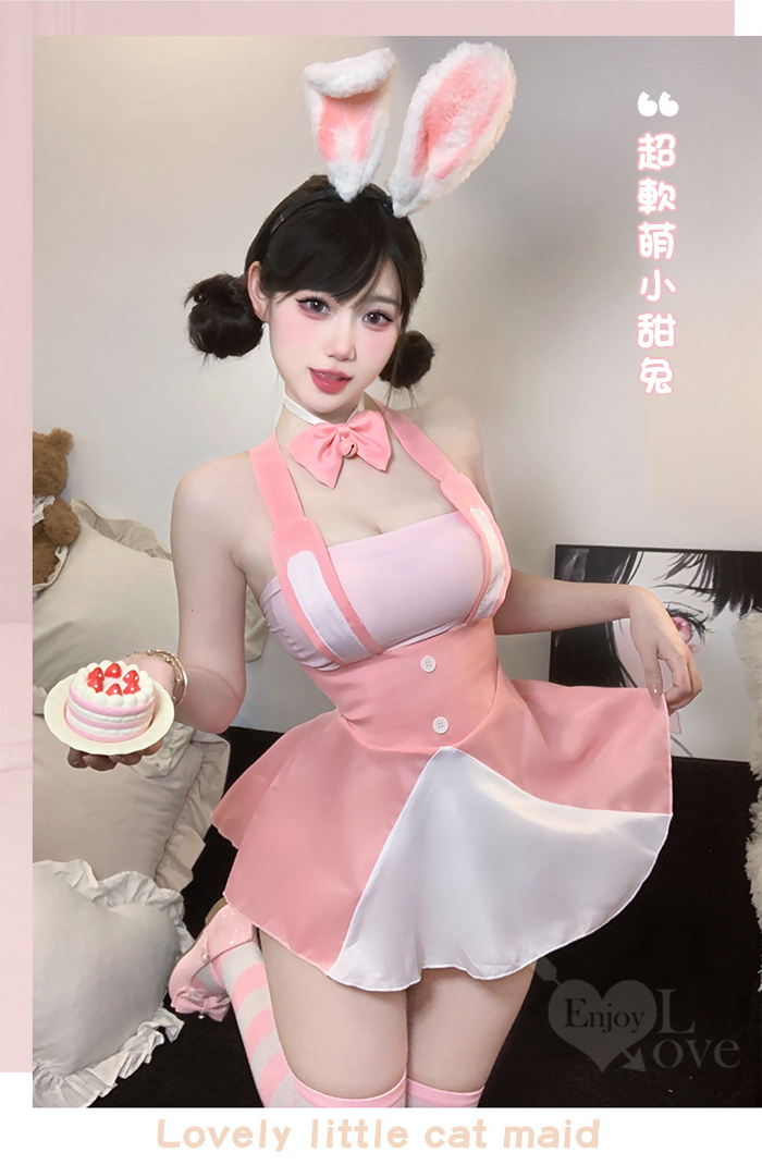►您現在的位置:首頁>兔女郎角色扮演服!甜萌鈴鐺蝴蝶領結粉白拼接後開衩吊帶裙三件組