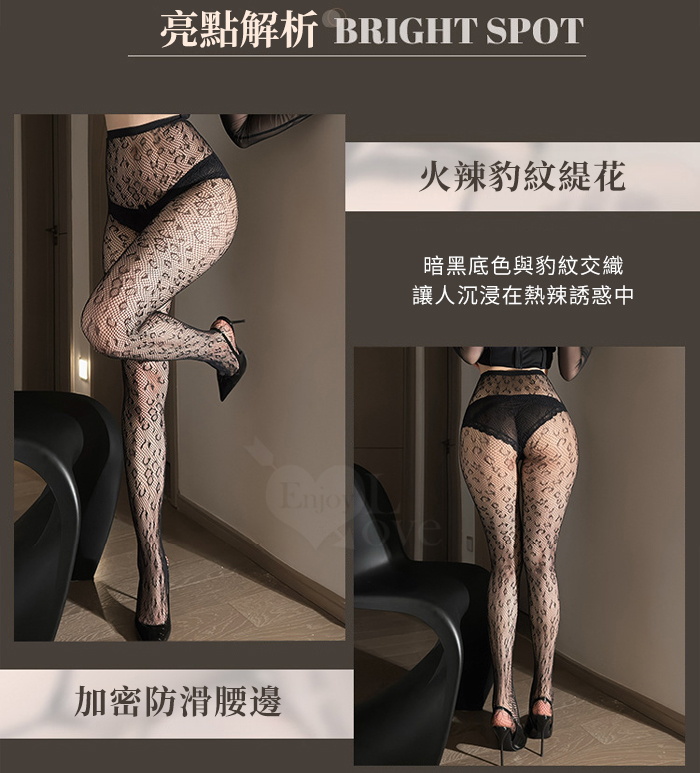 | 豹紋緹花誘惑透膚高腰連褲網襪