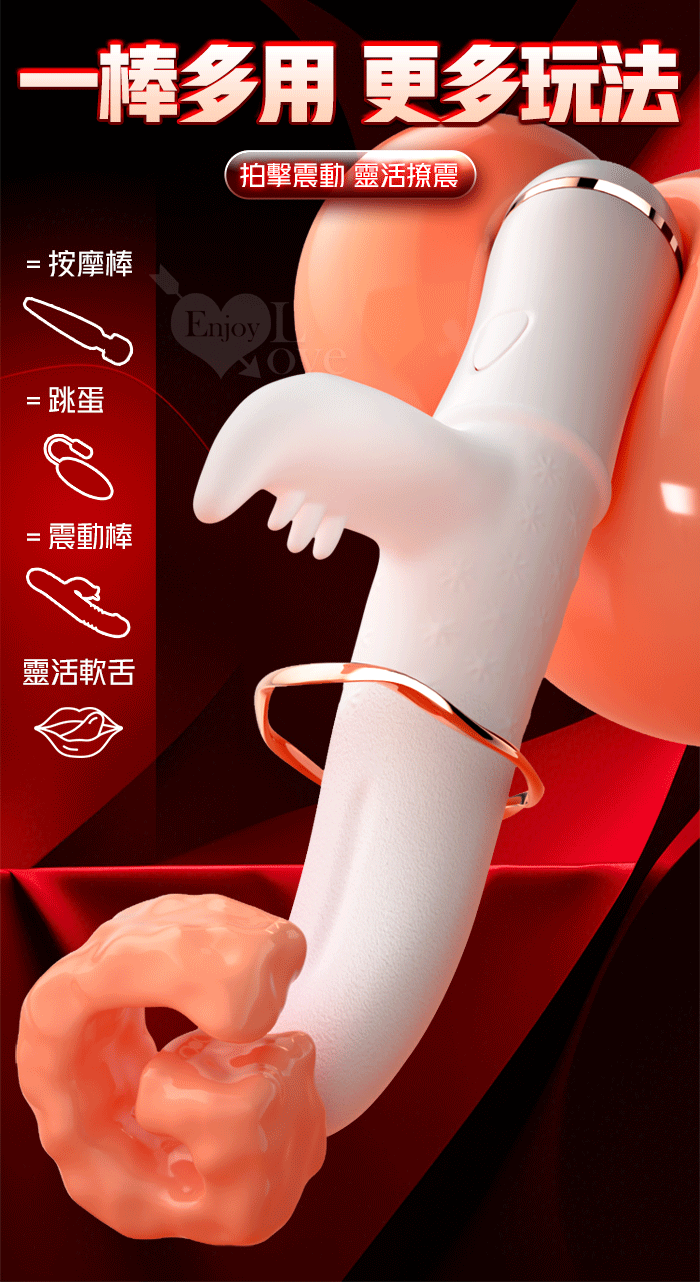 JIUAI 嗨玩大師 ‧ 內擺動拍打+外撩震顫 肥厚軟舌按摩棒﹝12頻調控+挺翹弧度+軟糯Q彈+USB充電﹞白色【特別提供保固六個月】