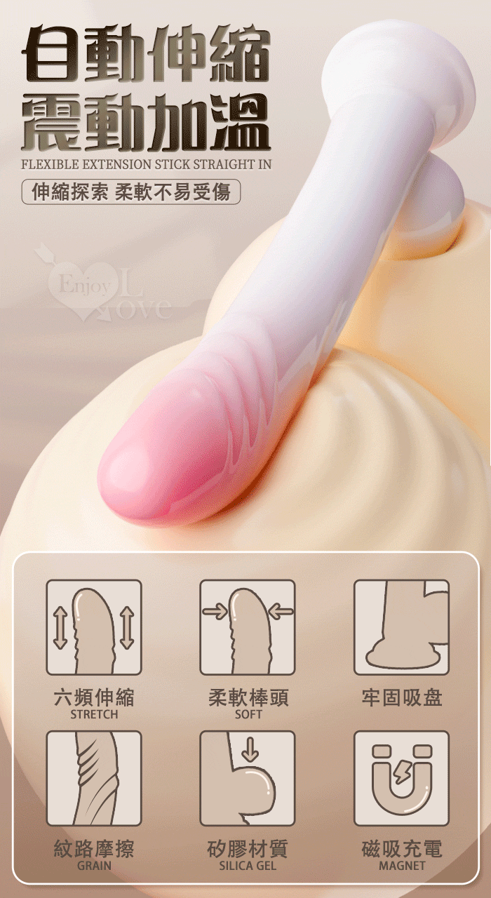 ►您現在的位置:首頁>白小生.無線遙控6X6頻伸縮震動 吸盤帶蛋肉感吸盤按摩棒 - 衝撞刺激/智能加溫/磨蹭G點/磁吸式充電/漸層粉色系