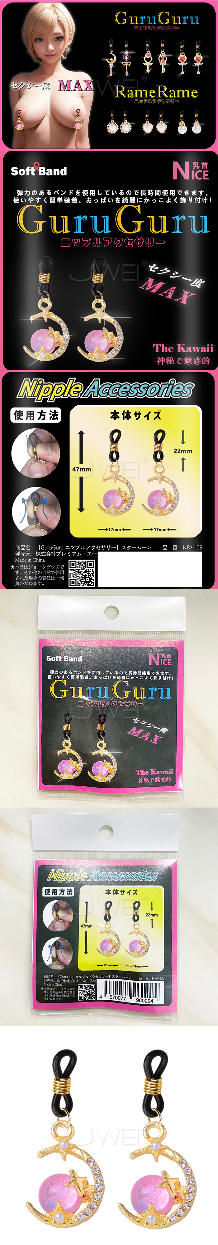 | 日本原裝進口EXE.GuruGuru 水鑽乳頭飾品【星月款】