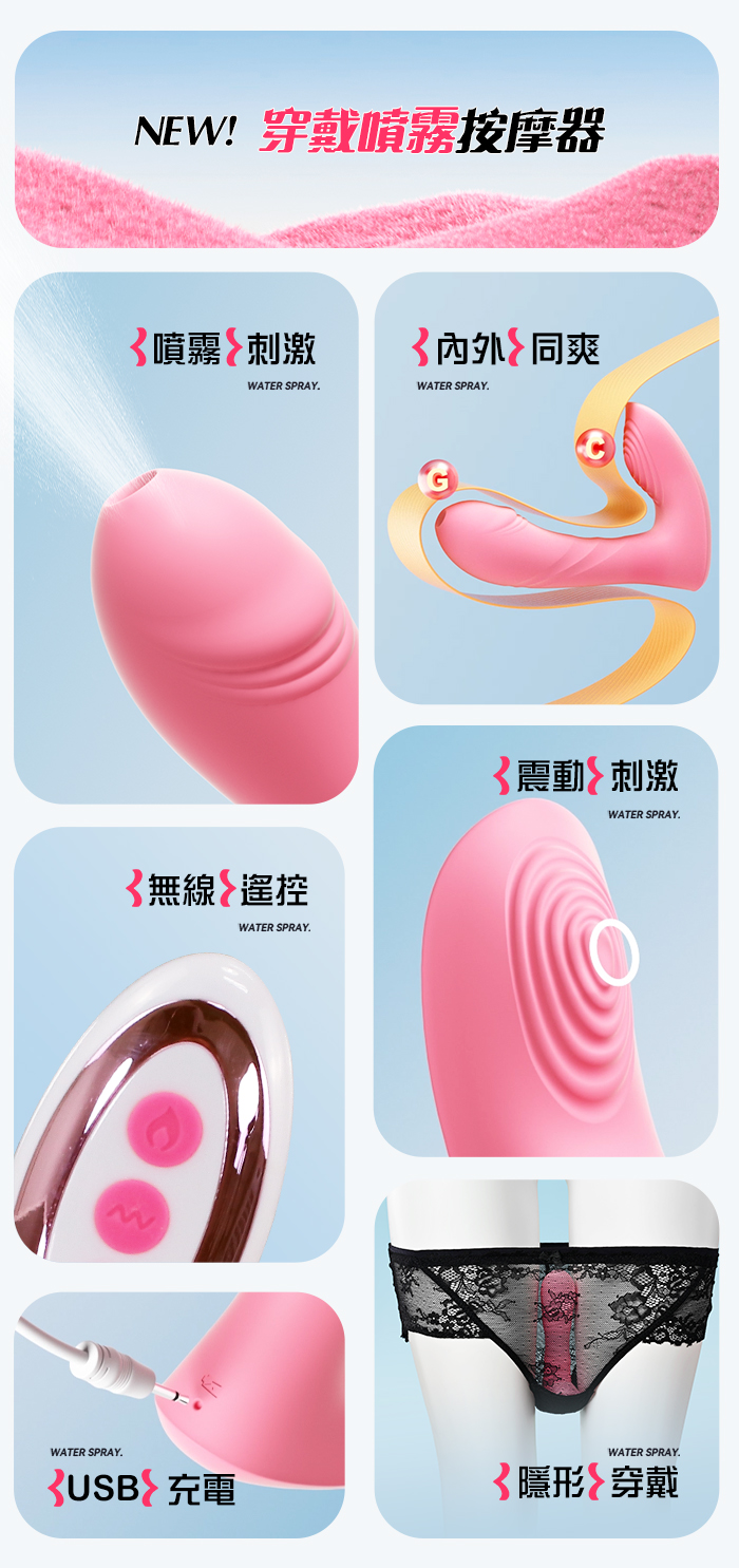 ►您現在的位置:首頁>ROSELEX 勞樂斯 ‧ 潮噴 無線遙控另類噴霧刺激 內外雙震按摩器﹝10頻強震動/內外同刺激/舒適矽膠/隱形穿戴﹞櫻花粉