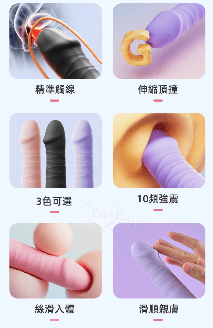 ROSELEX 勞樂斯 ‧ 蘭博 10變頻伸縮頂撞震動老二按摩棒﹝爽滑入體+螺紋摩擦+USB充電﹞淺紫