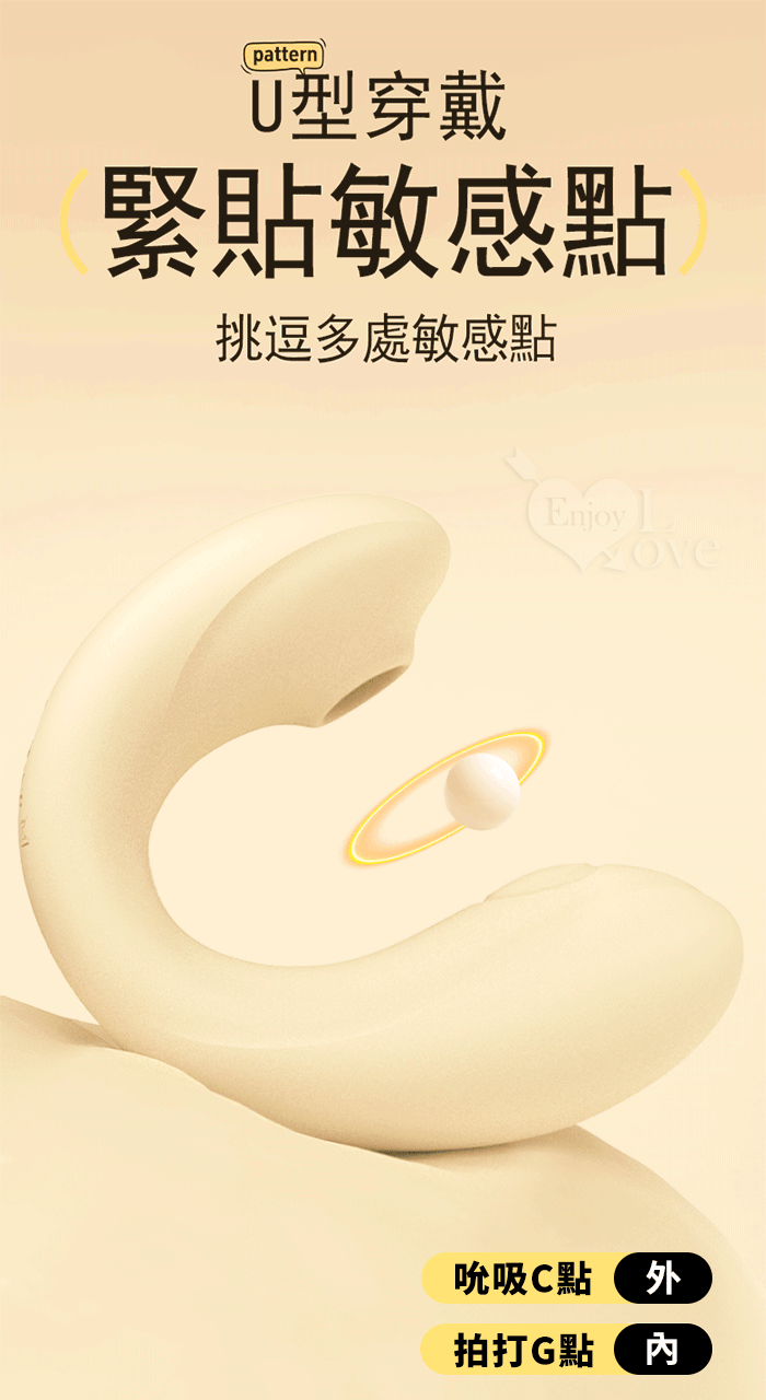 誘魅UNIMAT ‧ Summer 夏 U型10X10X10頻調控~拍打吮吸震動三重體驗按摩器-米黄