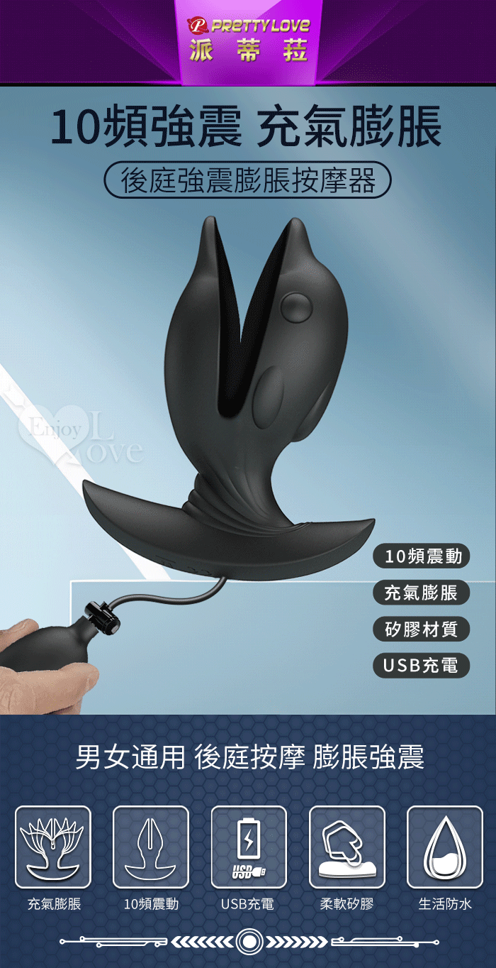 | 派蒂菈 ‧ Hanson 漢森 後庭充氣膨脹按摩擴肛器﹝10頻震動+海豚造型+男女通用+滑順矽膠﹞