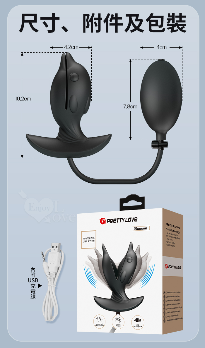 ►您現在的位置:首頁>派蒂菈 ‧ Hanson 漢森 後庭充氣膨脹按摩擴肛器﹝10頻震動+海豚造型+男女通用+滑順矽膠﹞