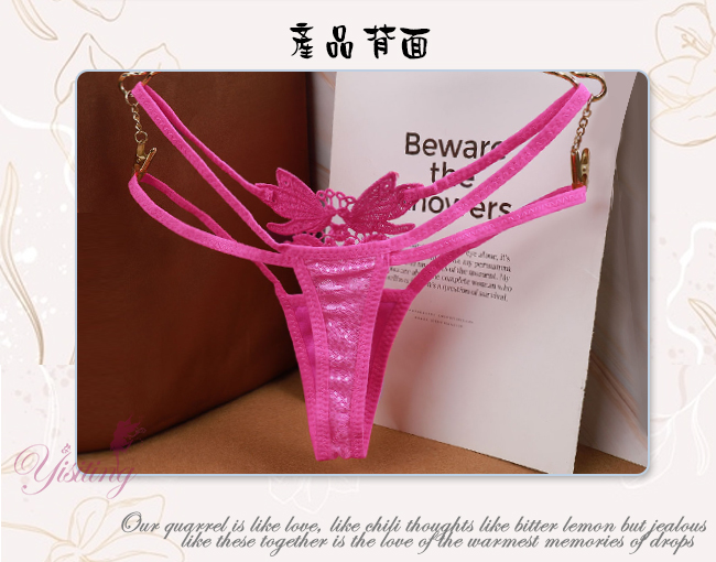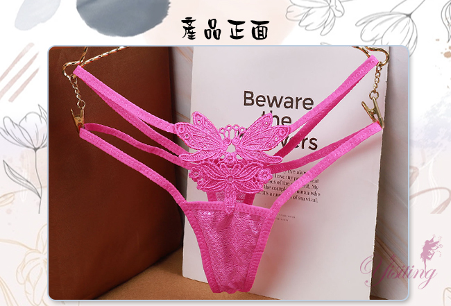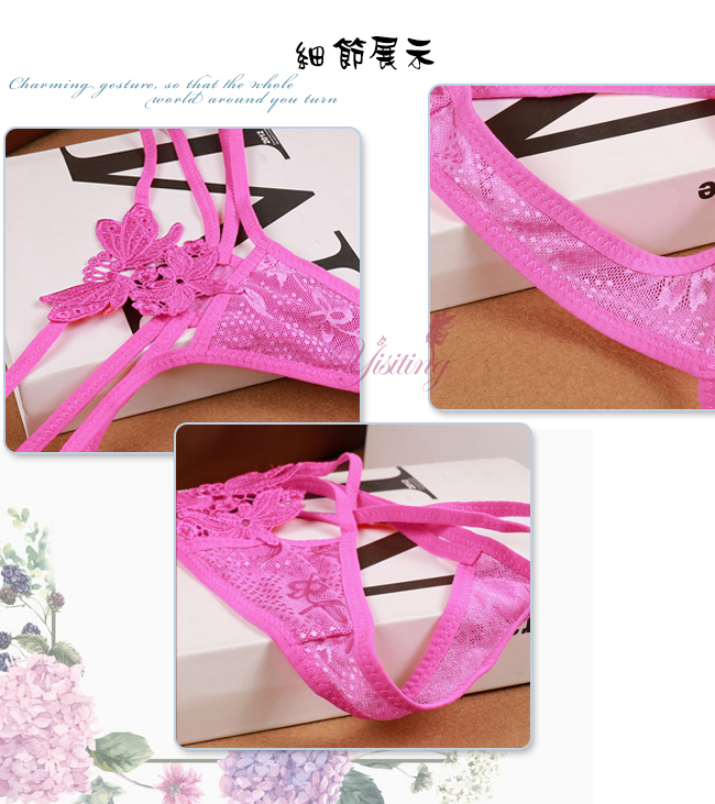 甜蜜舞動!蝴蝶雙飛彈力細帶花卉網紗美臀T字褲﹝玫紅﹞