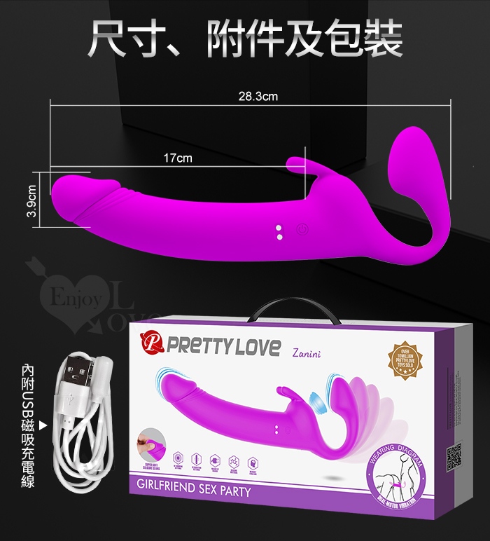 派蒂菈 ‧ Zanini 愛0距離 女女穿戴快樂共享 雙頭強震+鼓動穿戴按摩棒﹝10頻3馬達運轉+親膚矽膠+磁吸充電﹞