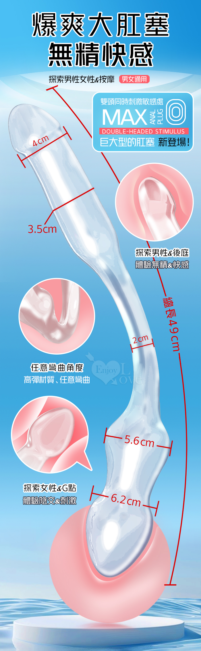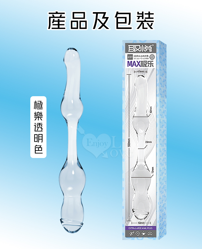 取悅 ‧ MAX極樂!XXXL巨大型雙頭水晶按摩棒-前陰後庭/男女皆適用﹝透明色﹞