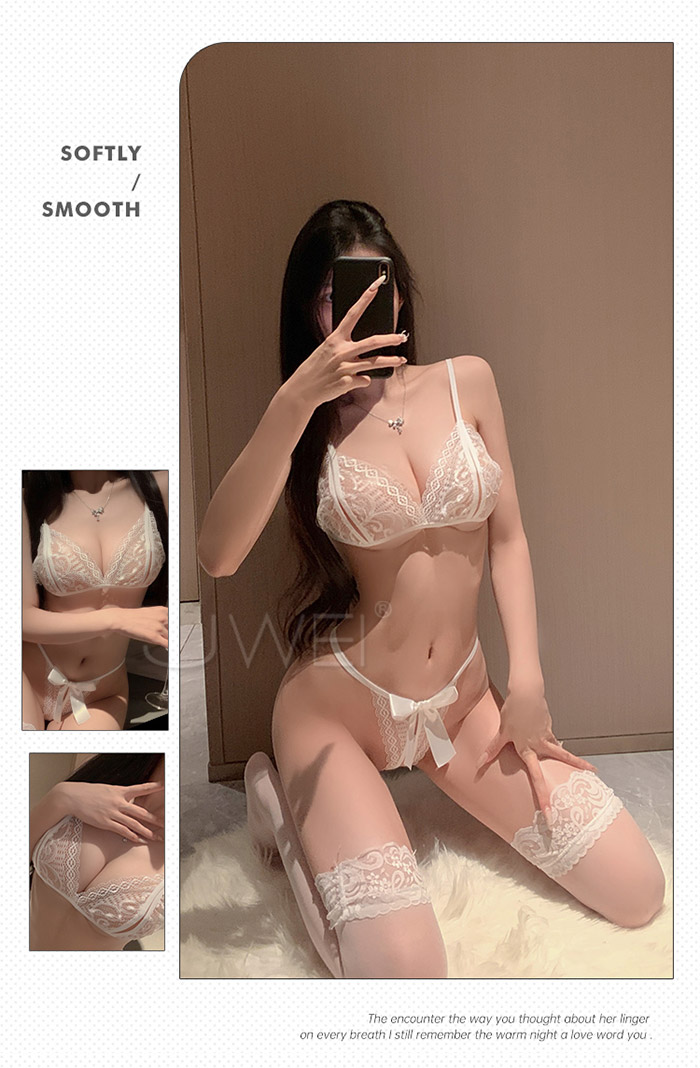 ►您現在的位置:首頁>嫵媚佳人.性感蕾絲透視開縫胸罩+蝴蝶結開襠丁字褲【白色】