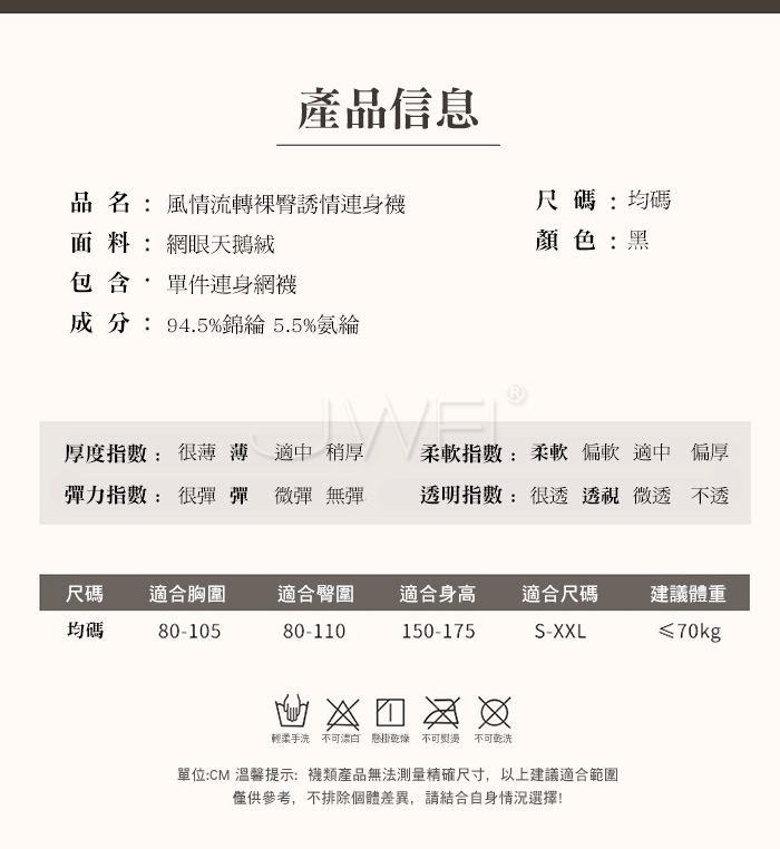 2.基於保障消費者個人衛生,情趣衣物類恕不接受退換貨,如為商品本身暇疵,接受三日內換貨,請勿試穿。