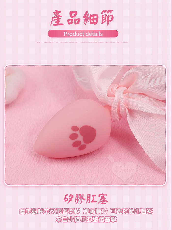 激性扮演 ‧ 蝴蝶結狐狸尾巴 可愛猫爪印親膚矽膠肛塞﹝粉紅﹞