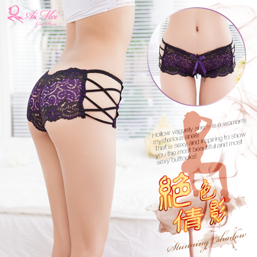 | 純欲小花.露臀蕾絲花鏤空中腰情趣三角褲超薄內褲#219白