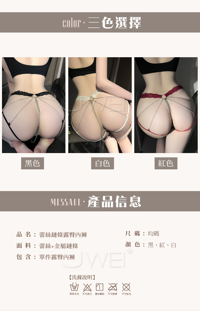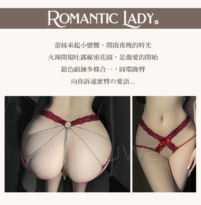 首頁>愛鏈之夜.圓環鏈條勒臀純欲蕾絲花邊開檔內褲【酒紅】