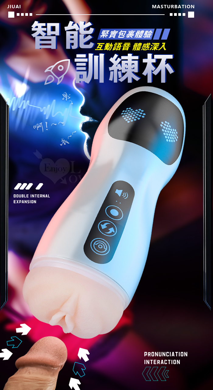 | JIUAI 星爵杯 ‧ 快樂自慰飛機杯-智能互動感應語音+12頻震動自慰訓練杯-升級款﹝免手持吸附+附耳機淫聲+USB充電﹞