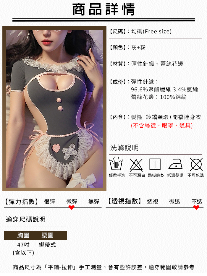 2.基於保障消費者個人衛生,情趣衣物類恕不接受退換貨,如為商品本身暇疵,接受三日內換貨,請勿試穿。