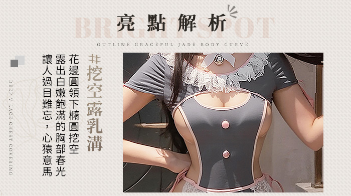 女僕角色扮演服|滾邊蕾絲・兩側挖空・翹臀剪裁開襠連身衣三件組