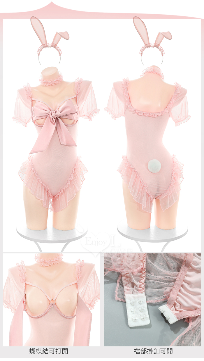 兔女郎角色扮演服!鋼圈托乳蝴蝶結高衩波點蕾絲開襠連身衣三件組