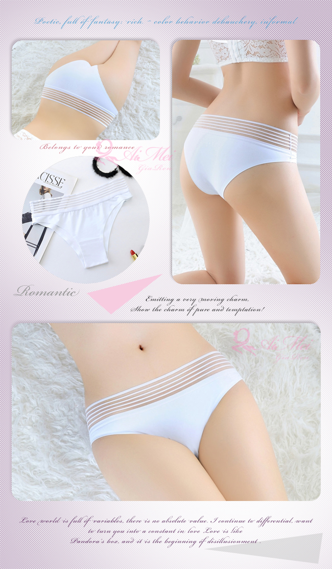 親密物語!絲滑冰絲條紋褲頭低腰三角褲﹝白﹞