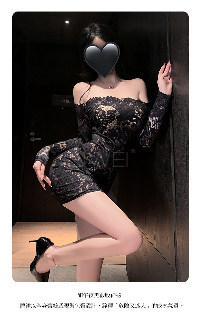 ►您現在的位置:首頁>花蔓朦朧.蕾絲雕花一字領透視包臀睡裙【連身裙+T褲+隱形肩帶-藍色】