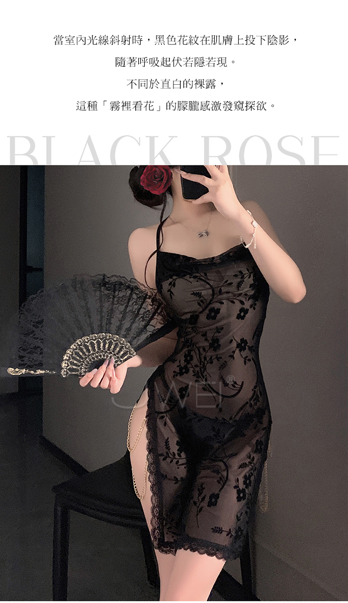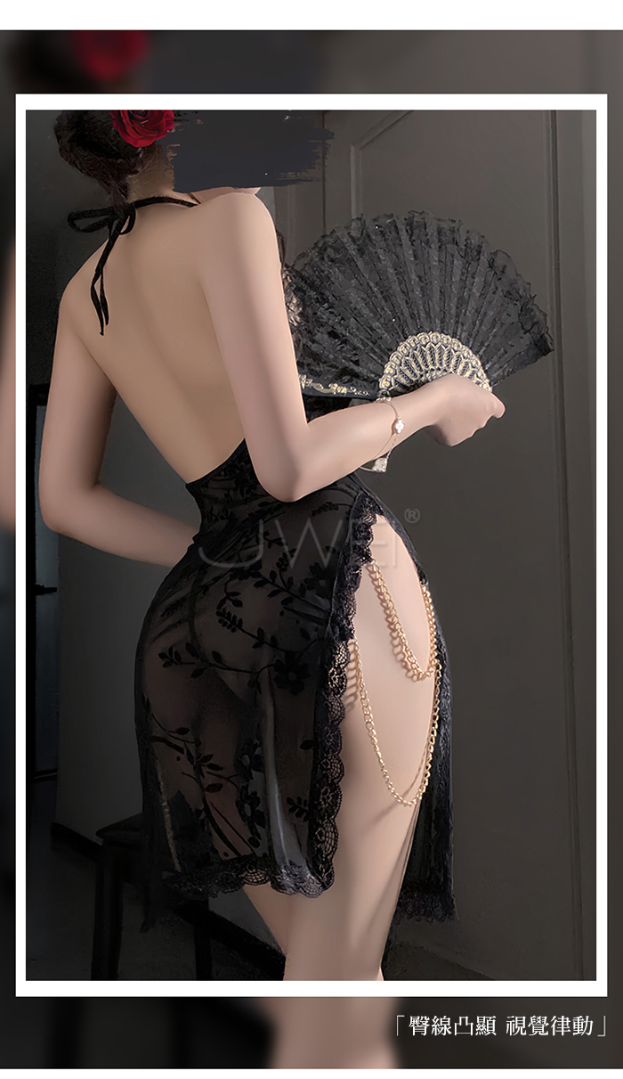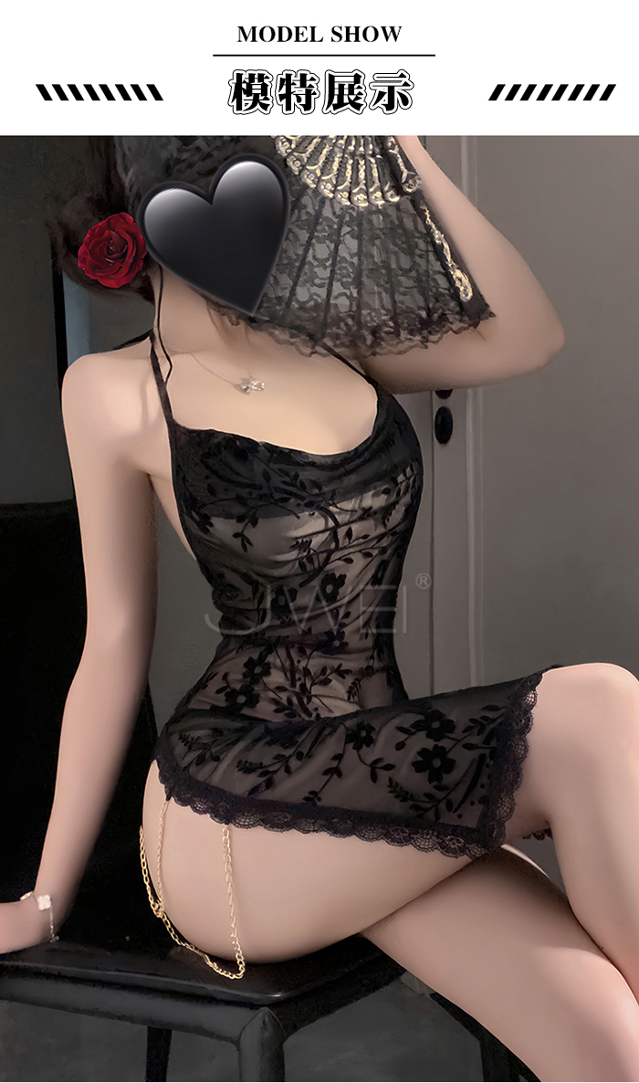 ►您現在的位置:首頁>暗夜綺夢.蕾絲堆堆領半透紗美背雙開衩鏈飾睡裙【睡裙+T褲】