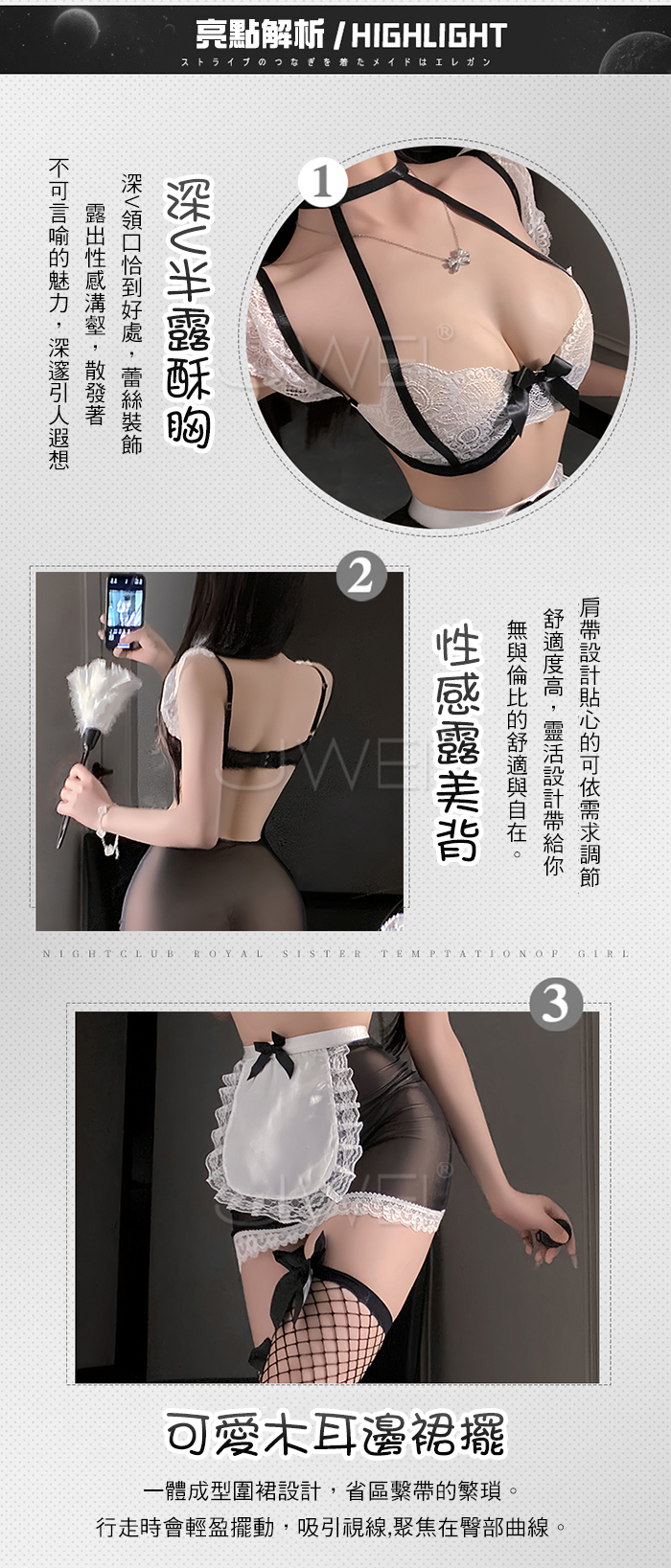| 契約俏女僕.深V低胸蕾絲誘惑美背透紗木耳邊裙擺甜欲女僕裝【上衣+短裙+T褲-黑色】