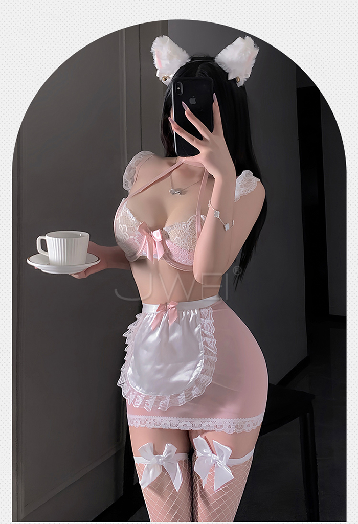 ►您現在的位置:首頁>契約俏女僕.深V低胸蕾絲誘惑美背透紗木耳邊裙擺甜欲女僕裝【上衣+短裙+T褲-黑色】
