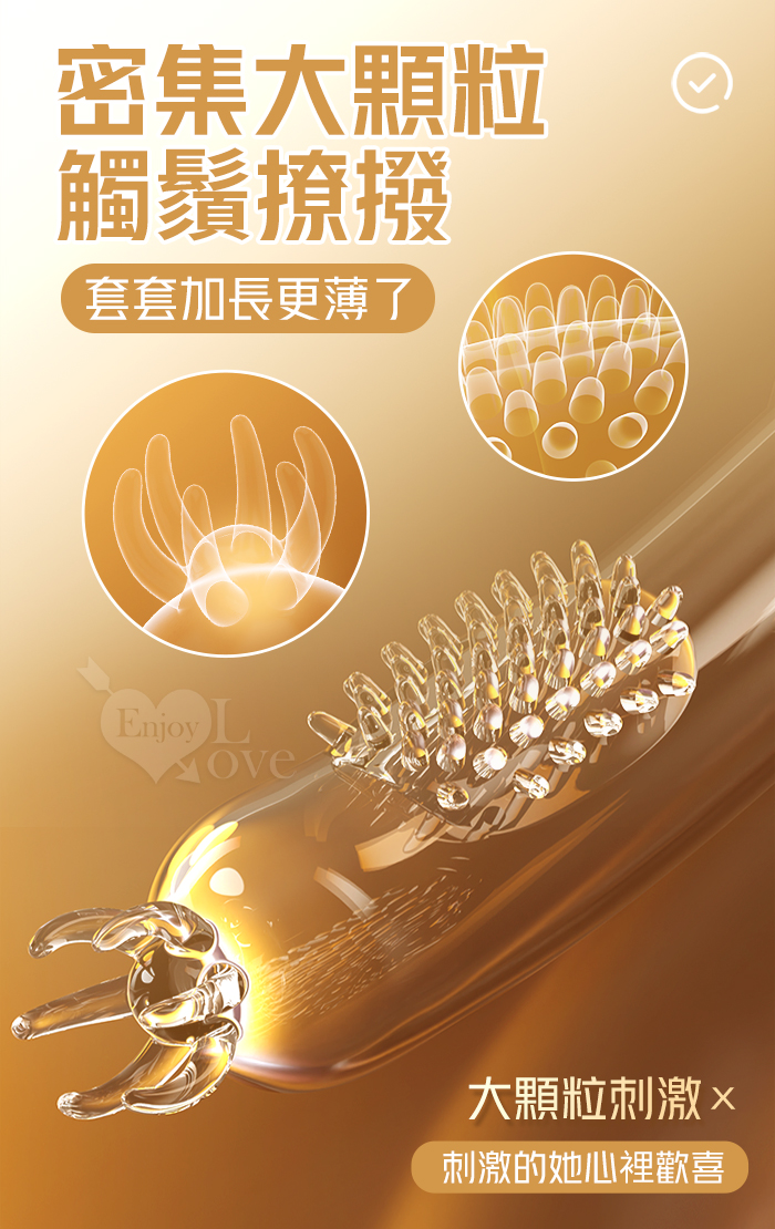 取悅 ‧ 觸鬚爆芽狼牙加強套-59個密集顆粒刺激G點~槍槍爆擊﹝透明黑﹞