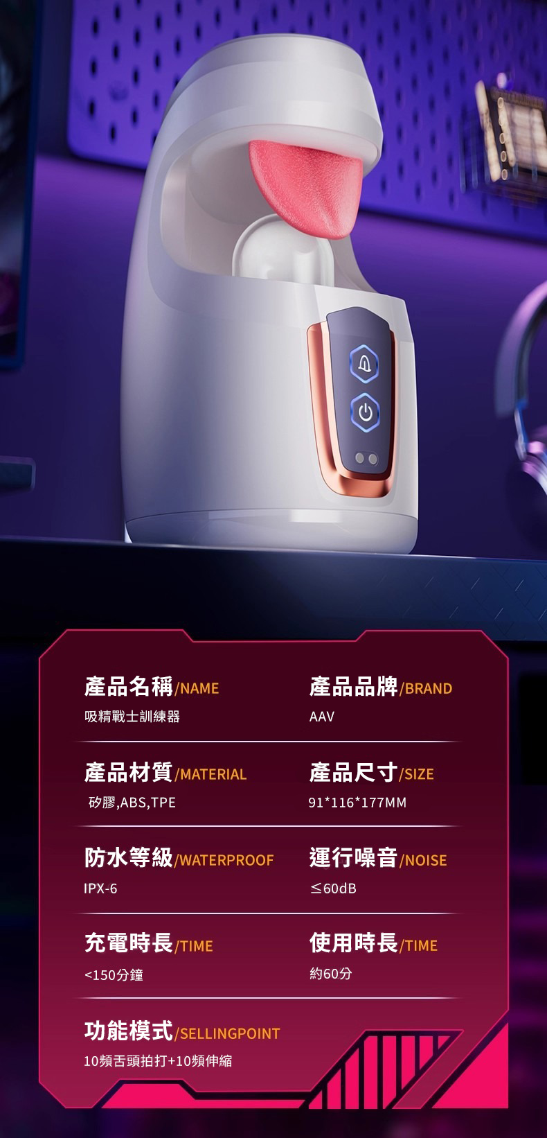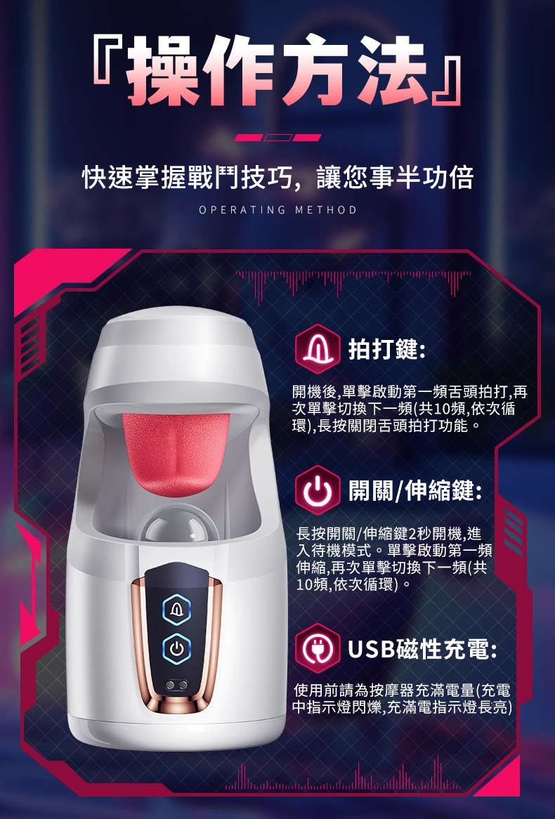 | 吸精戰士.舌舔拍打10頻震動+伸縮飛機杯 仿生舌舔暴力吸精器(白色)